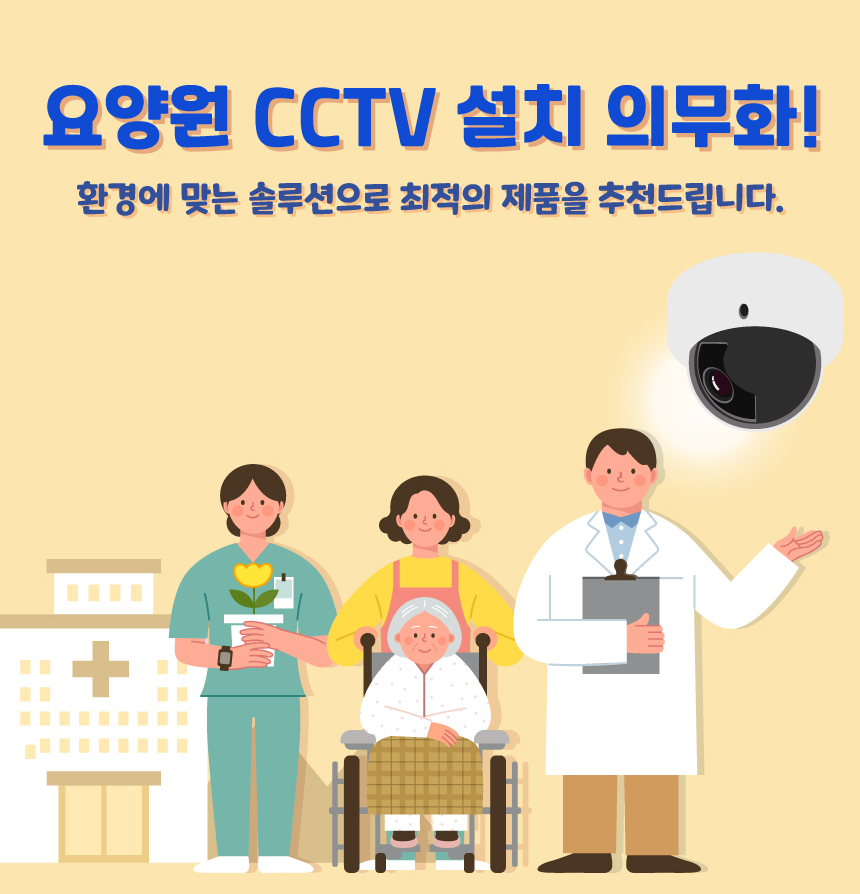 안전관리를 위해 요양원 CCTV설치가 의무가 되었습니다.